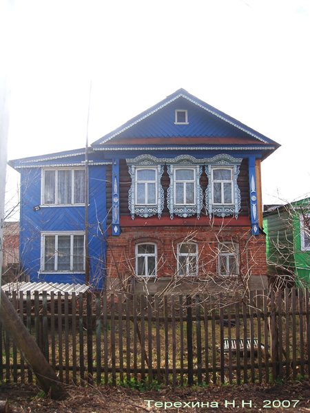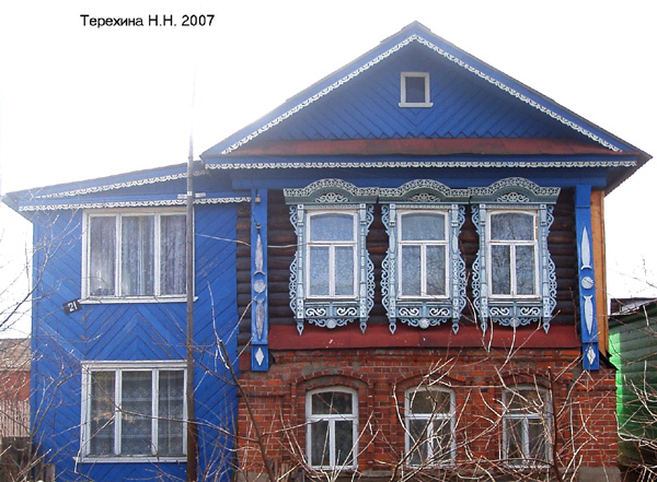 Варвара, на верхнем снимке - дом Крестьяниновых (так сказать, родовое гнездо), позднее во дворе дома Крестьянинов В.С. организовал ризочеканную и металлопрокатную фабрику, выстроил собственный дом - дворец справа от родового (дом №38). В советское время на базе фабрики сделали предприятие "Мстёрский Ювелир", в доме Крестьяниновых была фабричная контора, в цокольном этаже - сканный цех, а дом Крестьянинова превратили в клуб. В настоящее время ВСЁ ЗАБРОШЕНО.  На нижнем снимке низенький дом с кокошниками - бывшая бакалейная лавка Фатьянова Н.А. А сейчас в этом доме даже окна поменяли на метвллопластиковые! Прогресс!