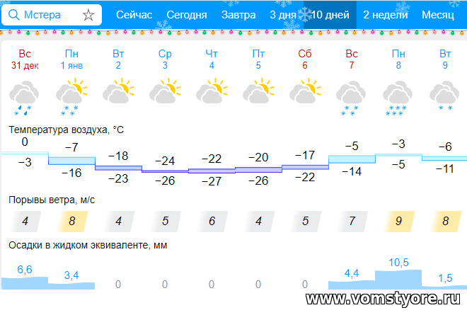 В субботу и воскресенье столбик термометра опуститься до -10 градусов ночью и до -6 градусов днем.