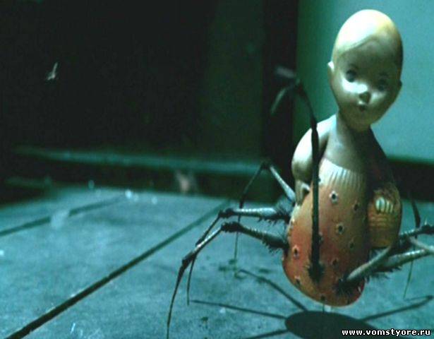 Осталось научить ее превращаться в паука. Вы когда-нибудь видели, как в салоне красоты на компьютере подбирают клиентам прически? Вот примерно так режиссер “примеривал” кукле лапки от различных насекомых. Приглянулись тонкие полосатые лапки экзотического паука. Лапкам добавили мохнатости и аккуратно подсоединили к модели. С самими лапками особых проблем не возникло. Но когда Машенька попыталась пробежаться по-паучьи, создалось впечатление, что она чуть ли не на гусеницах едет. Поэтому аниматоры решили, что кукла должна еще и немного раскачиваться в такт шагам. Получившееся создание, как и задумывалось, производило ужасное впечатление.