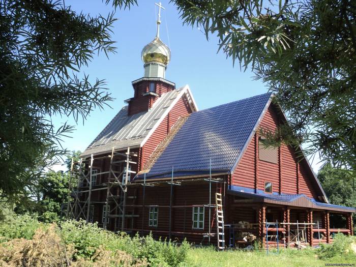 Строительство храма Казанской Божьей Матери в Налескино. (2013 год)