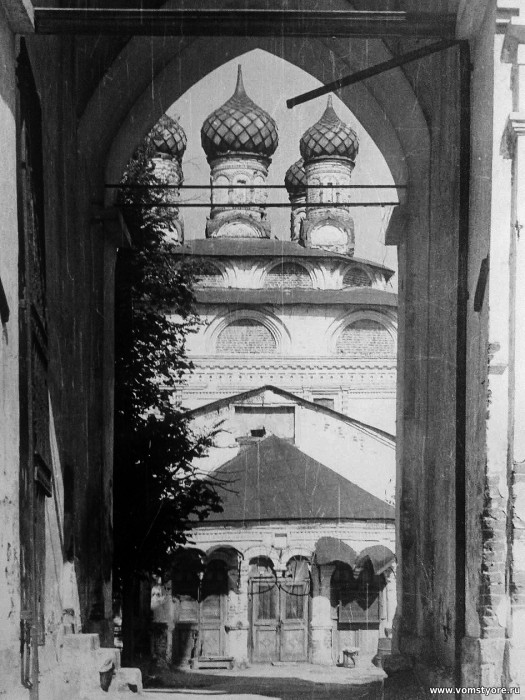 Вид на Богоявленскую церковь через портал Колокольни. Фото из архива жительницы Мстёры Любови Захаровой.