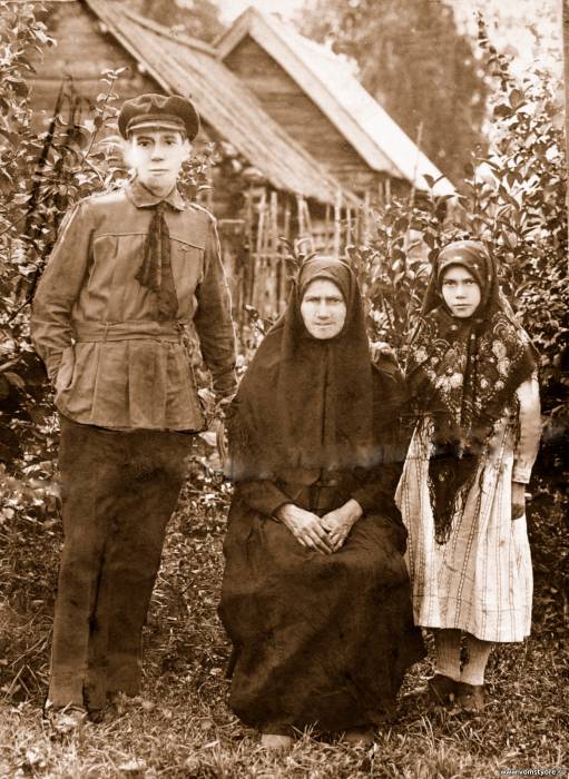 Прабабушка Дубкова Анна Никифоровна с сыном Алексеем и дочерью Марией. д. Коровашево. Фото возможно около 1919-1920 гг.