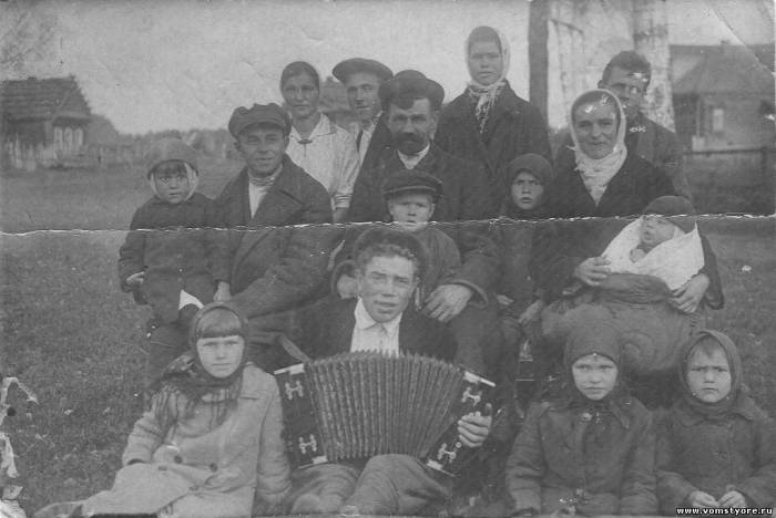 Жители Долгово,Вязниковского р-на.Семя Павловых.В центре Павлов Василий.Слева,во втором ряду его сын - Павлов Алексей Васильевич с дочерью Ниной.Погиб на фронте в 1941г. Фотография примерно 1934-36г.