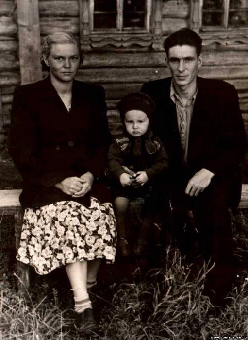 Жители д. Долгово Павлов Николай Васильевич, Павлова Вера Ивановна и старший сын Александр 1958 г.