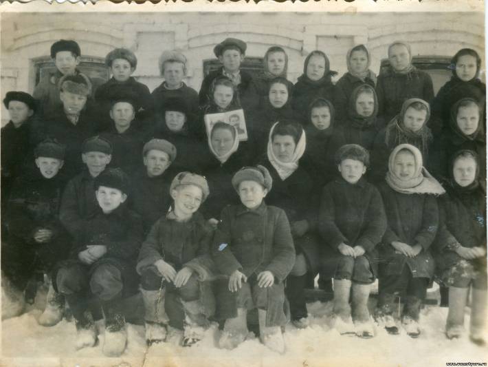 д.Митинская Вязниковский р-он Четырёхлетняя школа 1941 гг.Внизу улыбается Рыбаков Геннадий Александрович,справа от него Фарафонов Анатолий Иванович.Учителя:Анастасия Михайловна и Старкова Зоя Ивановна ( перед Сталиным)