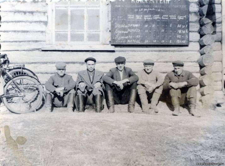 д.Семынь.У здания правления колхоза.2-й справа Тараканов Иван Константинович.1956 г.