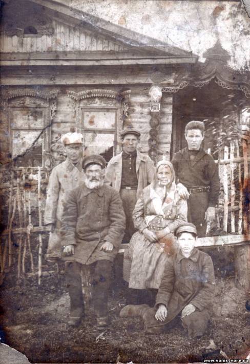 Семья Шалёнкиных. Село Спас-Иваново. 1920-е гг. На фото: сидят: Иван Михайлович с женой Пелагеей Николаевной; стоят (слева направо): Николай, Евлампий, Геннадий Ивановичи; сидит на земле Александр Иванович.