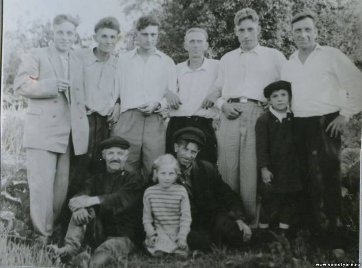 д.Свиново 1956 г. Стоят слева:Фарафонов Виталий Иванович,Кренделев Иван Фёдорович,Поздняков Василий,Разумов Николай,Александр Иванович Фарафонов,Фёдор Бударин.Сидят слева Кренделев Фёдор Епифанович,Нина Ивановна Фарафонова,Фарафонов Иван Платонович