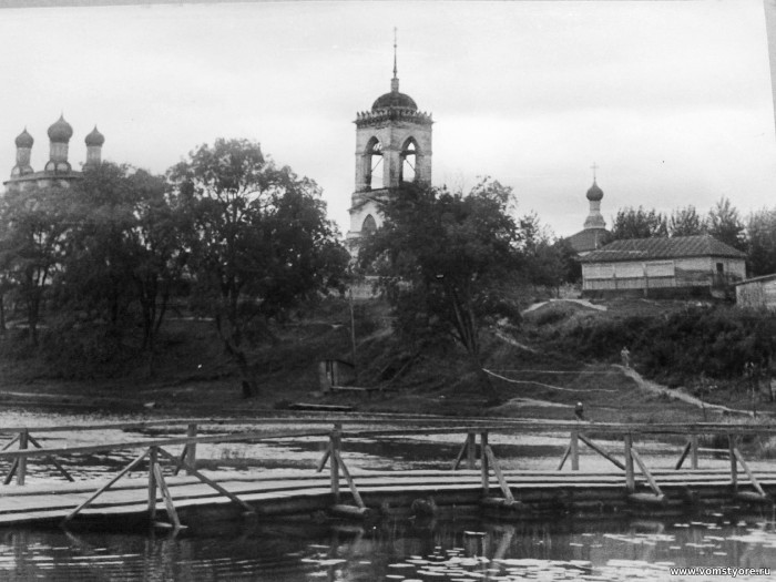 Вид на Свято-Богоявленский мужской монастырь и деревянный мост со стороны 2-й Набережной ул.