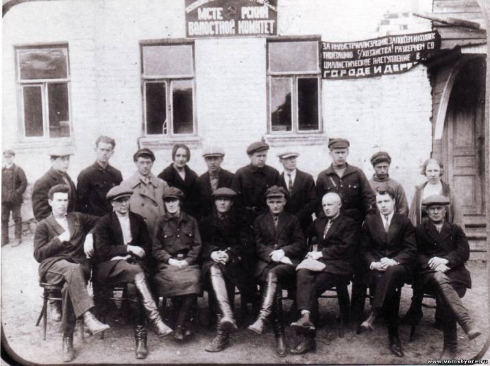 Мстёра. Группа у здания Мстёрского волостного комитета. Кон. 1920-х гг. Фото И.И.Щадрина.