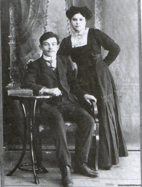 Один из представителей династии мстёрских иконописцев Кириковых Александр Николаевич Кириков с женой Натальей Фёдоровной.Фото И.И.Щадрин.Ок. 1911 г.