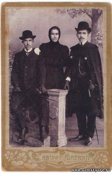 Фотография приблизительно 1911 года. Мстёра. Слева направо: Сеньковы Павел Степанович, Елена Степановна, Михаил Степанович. Фото из семейного альбома Сенькова С.Б.