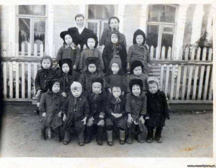 п.Мстёра.Группа детского сада фабрики им.Дзержинского.Слева воспитатель Козлова Анна Григорьевна. 1951 г.