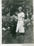 Работница Мстёрской строчевышивальной фабрикаи им.Н.К.Крупской демонстрирует образец выпускаемой продукции. Фото из частного архива.