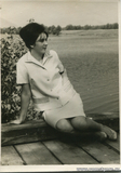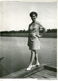 Работница Мстёрской строчевышивальной фабрикаи им.Н.К.Крупской демонстрирует образец выпускаемой продукции. Фото из частного архива.