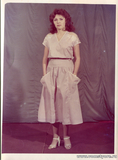 Работница Мстёрской строчевышивальной фабрикаи им.Н.К.Крупской демонстрирует образец выпускаемой продукции. Фото из частного архива.