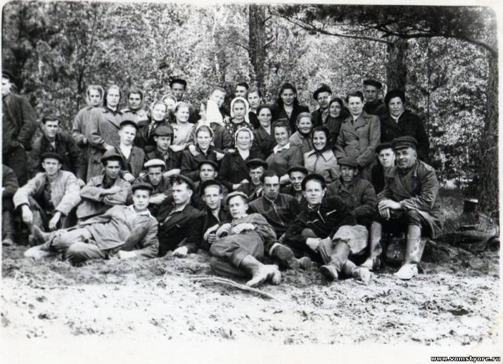 Помощь колхозу "Мстёрский".Бригада рабочих ф-ки им.Дзержинсокго.1950-е годы