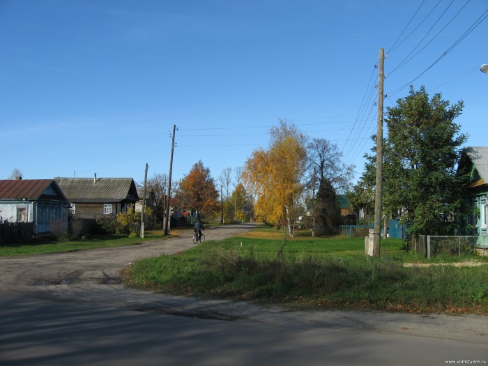 Мстёра. Поворот на улицу Больничную со стороны улицы Советской, октябрь 2016 г.