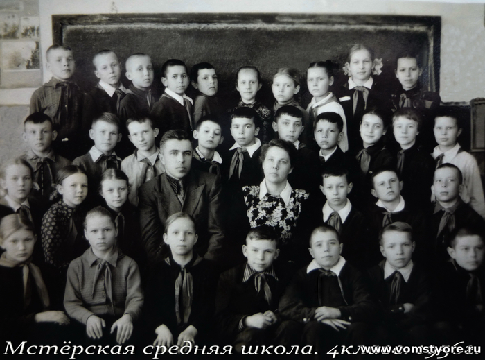 Мстёрская средняя школа, 4-й класс, 1956 г. Верхний ряд слева направо: Максимов Б.,Посохин С.,Гурылёв В.,Котков Б.,Егорычев А.,Серова Н.,Мордасова,Уткина, Позднякова. 2-й ряд слева направо:Наумов Б.,Вифлеемский Б.,Назаров Н.,Карпухин В.,Миронов В.,Воронин С.,Зверев А. 3-й ряд центр слева направо:Мордасова,Шилова,Самойленко А.,Калачев Виктор Алексеевич, Коткова Лидия Ивановна, Молочнов В., Дмитриевский Н.,Сериков Л. Нижний ряд слева направо: 4-й Кулаков Е.,Румянцев В. Если вы кого-то узнали на фотографии, укажите в комментариях.