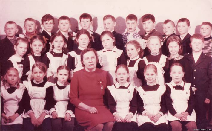 Классный руководитель - Рожкова Елизавета Васильевна. Ученики (слева на права) первый ряд: Зинаида Кислякова, Ольга Куражова, Наталья Лебедева, Алла Пискунова, Татьяна Щурова, Елена Куприянова. Второй ряд: Любовь Никитина, Ольга Жигалова, Валентина Зайцева, Светлана Порошина, Светлана Воронина, Наталья Белова, Наталья Морозова, Светлана Елсуфьева, Михаил Евдокимов. Третий ряд: Александр Геранин, Василий Корнев, Юрий Мочалов, Михаил Онасенко, Юрий Черепенин, Владимир Папушников, Леонид Клипов, Сергей Кощеев, Александр Разгильдеев, Александр Кресов, Сергей Шишаков.