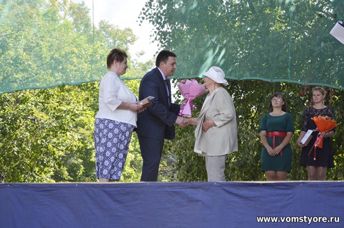 Вручение звания Почётного гражданина посёлка заслуженному художнику России Лидии Александровне Демидовой. Фото из газеты МАЯК 11.08.2015