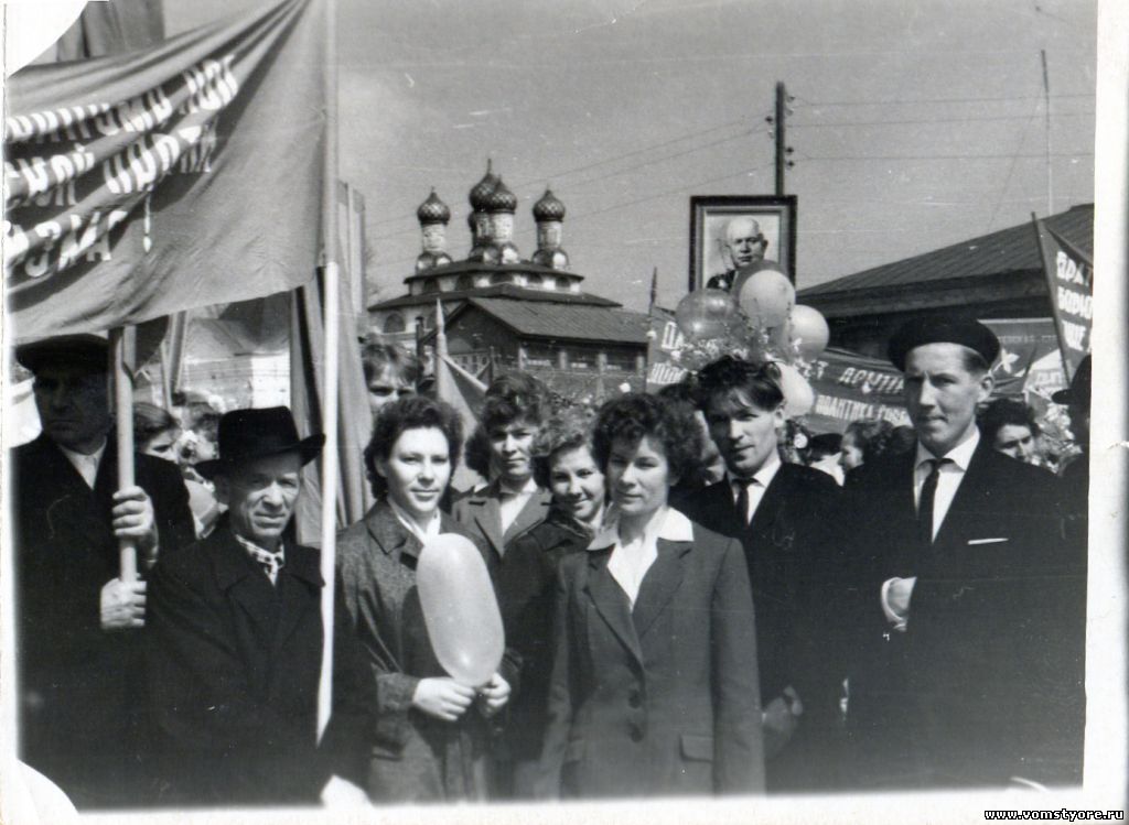 На фото: Первомайская демонстрация во Мстёре.Колонна рабочих фабрики им.Дзержинского.1960-е годы.